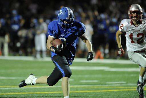 Wheeling’s Noah Ihde hauls in a 32-yard pass in the second quarter for the touchdown against Mundelein.