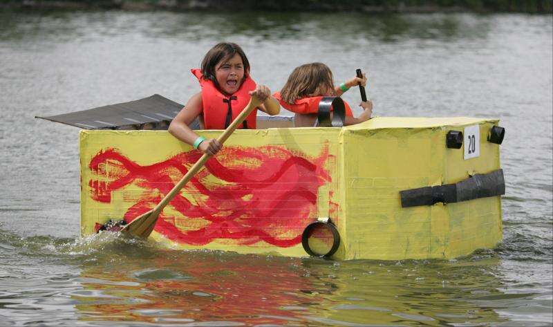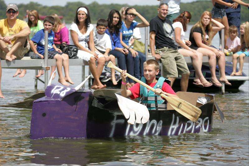The annual Cardboard Cup Regatta Sunday at Lakefront Park sponsored by the Village of Fox Lake Parks and Recreation Department. Contestants built boats made strictly of cardboard, duct tape and paint and raced for medals and trophies. Gilbert R. Boucher II/gboucher@dailyherald.com