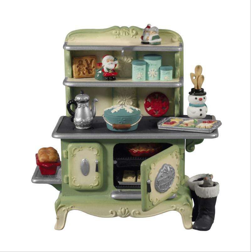 The ornaments available for purchase this year are Mrs. Claus’s stove for $34.95 and Mrs. Claus’s Kitchen Table for $17.95.