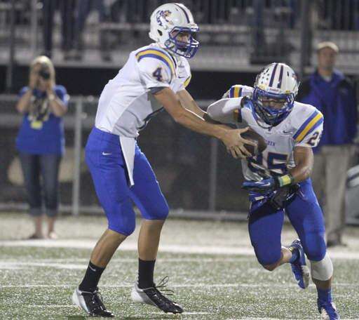 Warren quarterback Adam Reuss celebrates a touchdown.