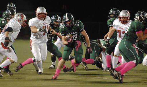 Bartlett’s Nick Mazzei holds on to the ball on a carry against South Elgin.