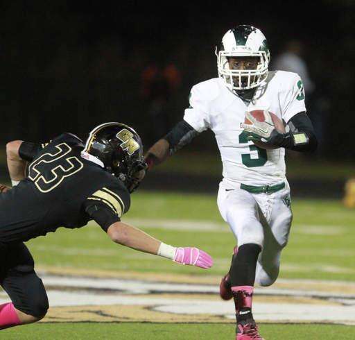 Grayslake North wide receiver Vincent Smith runs past Grayslake Central defender Davonta Jennings at Grayslake North.