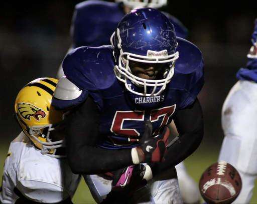 Jacobs’ Nick Gierlak pulls down Dundee-Crown’s Sam Franckowiak on a punt return.