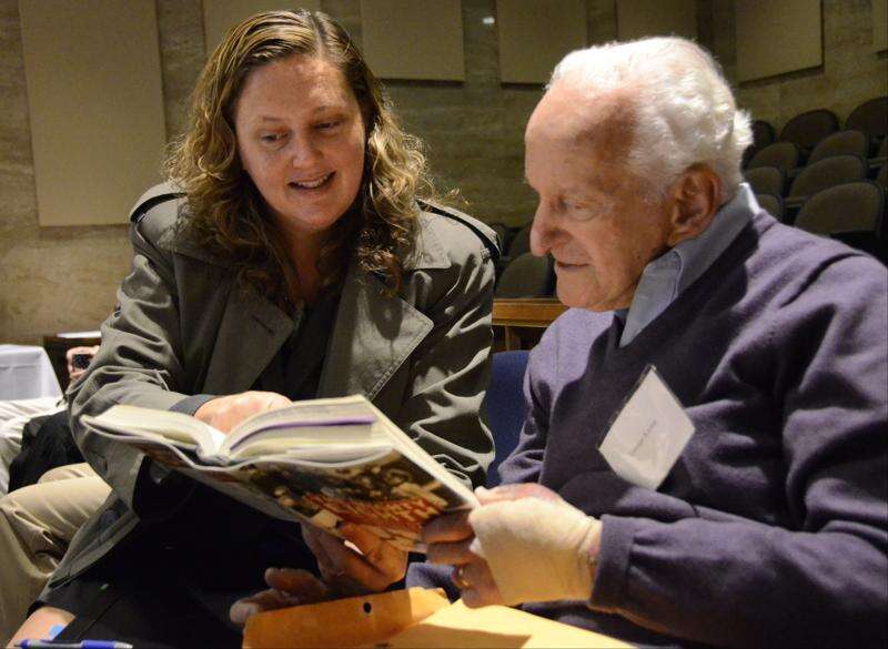 Assistant StateÂ’s Attorney Janelle Christensen talks with World War II Air Force veteran George Kaiser of Lake Forest. Bill Zars/bzars@dailyherald.com