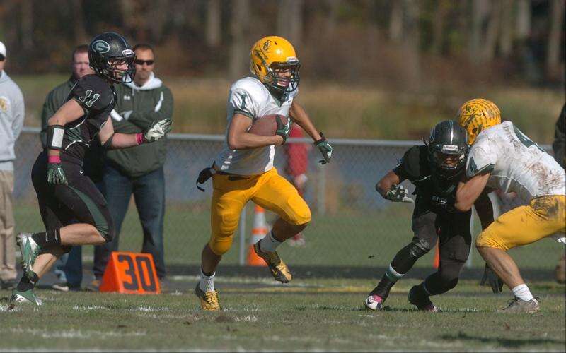John Pass of Elk Grove moves the ball during the Elk Grove at Glenbard West football game Saturday.