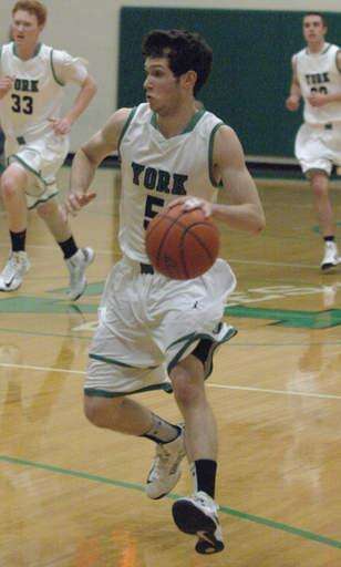 David Cohn of York takes the ball to the net around Anthony Rehayem of Naperville North .