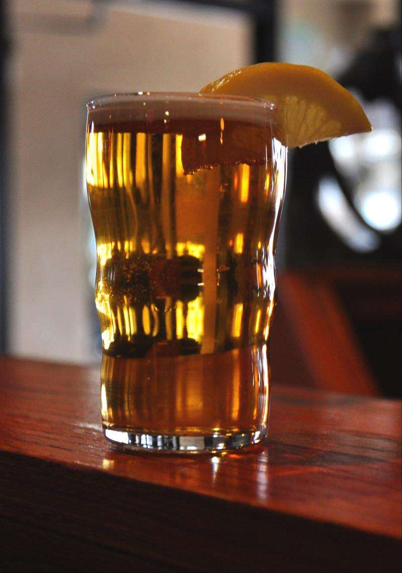 Wigged Pig Wheat beer is served with a slice of lemon. It’s one of several craft beers made at the Blue Cat Brew Pub in Rock Island. Photo by Katherine Rodeghier