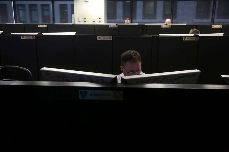 In this Tuesday, Feb. 19, 2013 photo, police officers monitor computer screens showing an interactive map of an area of the city, security footage from nearby cameras, if there are high radiation levels and whether any other threats have been made in New York city. Associated Press