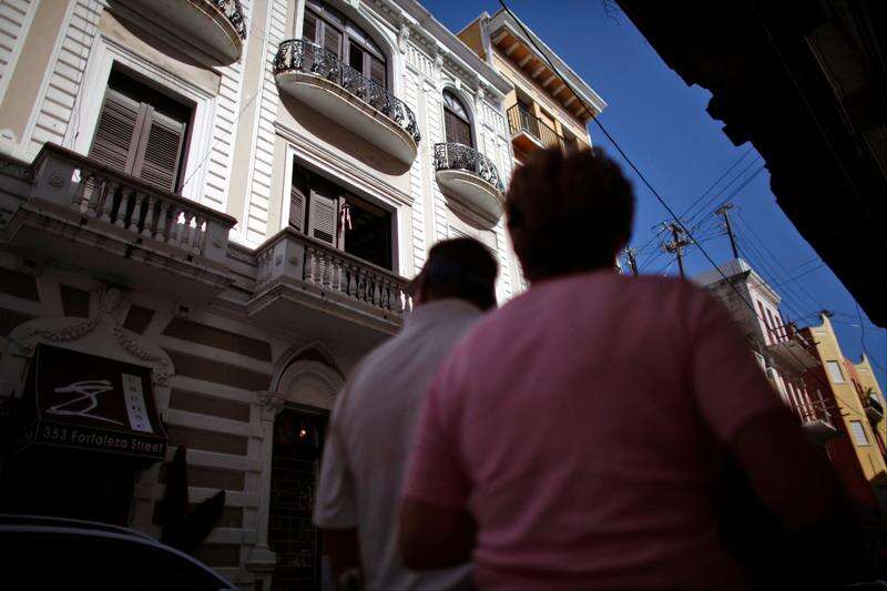 People walk in a street of the historic colonial section of San Juan named Old San Juan in Puerto Rico. Associated Press