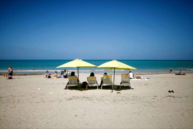 People enjoy a sunny day at the Isla Verde Beach in Carolina, Puerto Rico. Associated Press