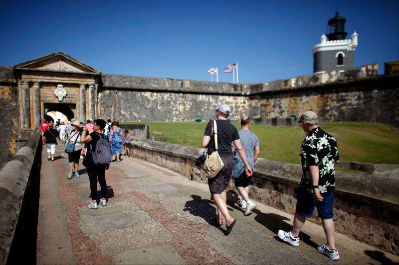Tourists walk near the 16th-century Spanish fort called El Morro in Old San Juan, Puerto Rico. Associated Press