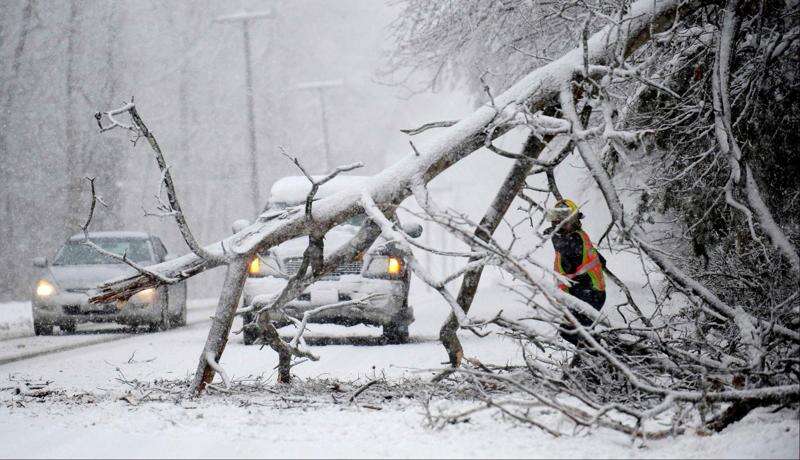 In Virginia, three people were killed, including a 22-year-old man who died after his vehicle ran off an icy road. Up to 20 inches of snow piled up in central and western Virginia, which had more than 200,000 outages at the height of the storm. The storm dumped 2 feet of snow in parts of neighboring West Virginia, closing schools in more than half the state and leaving more than 20,000 customers without power. Two North Carolina boaters were missing offshore after a third crew member was rescued Wednesday.