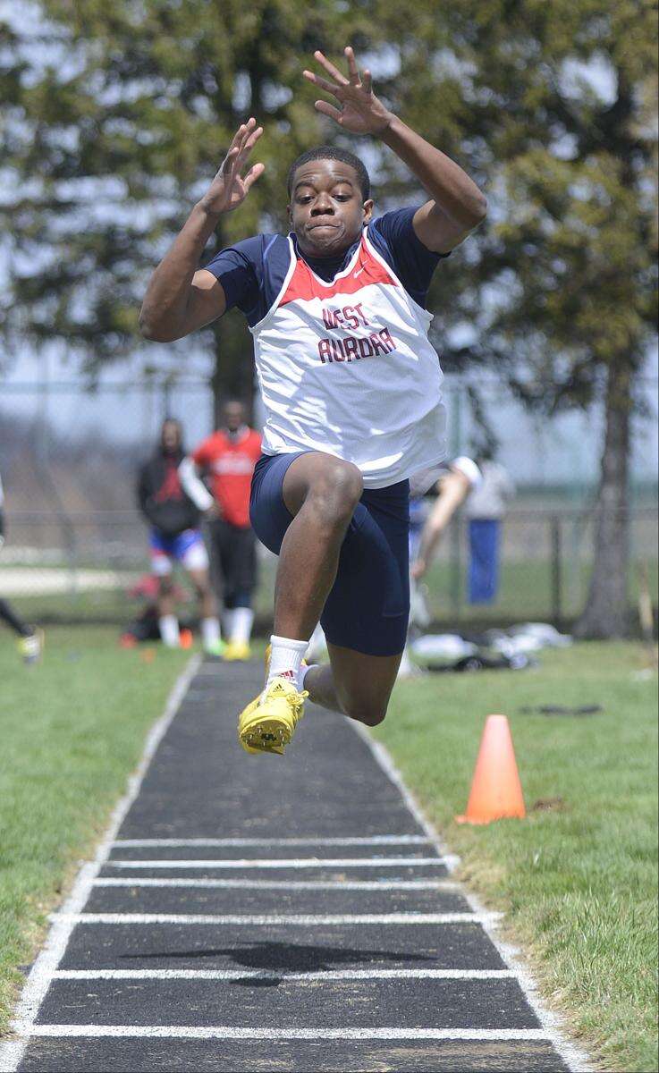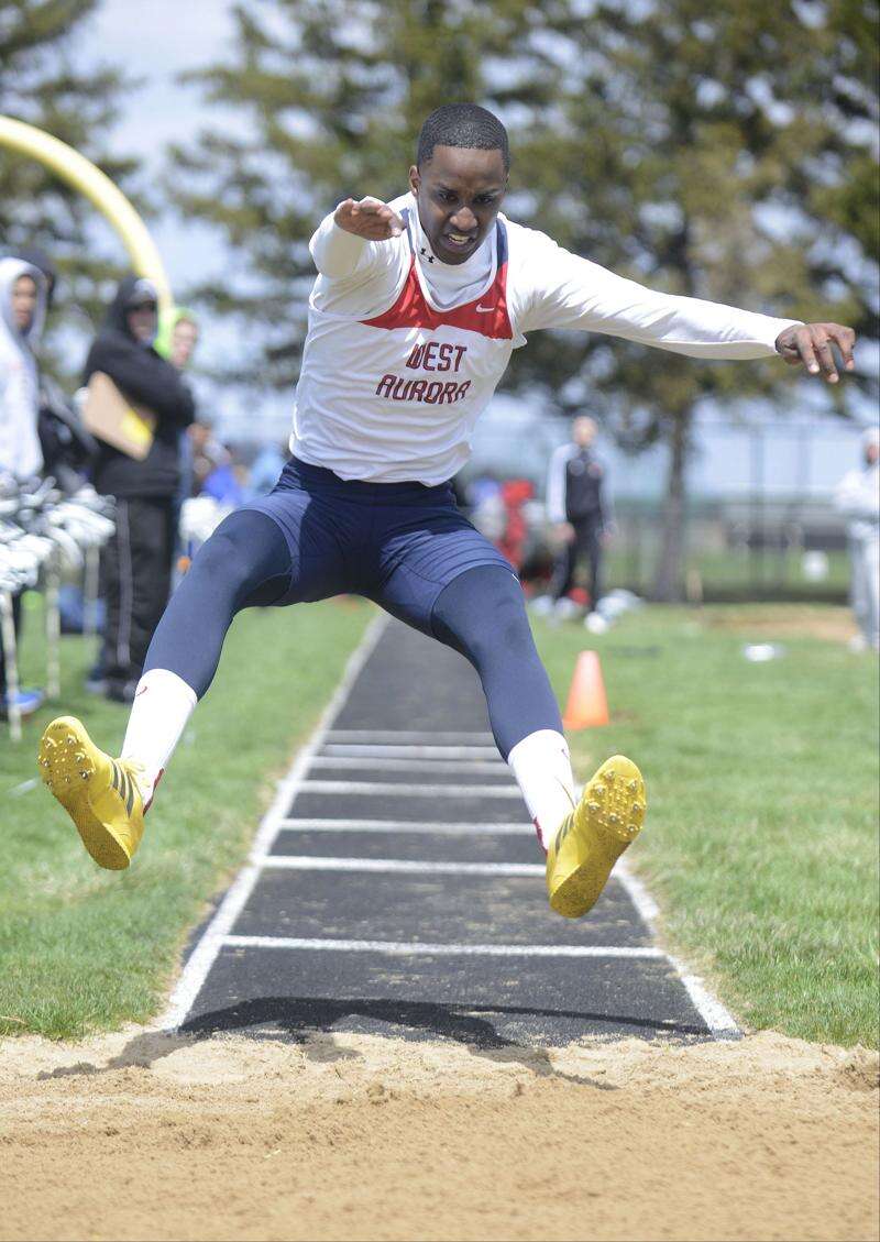 Dalvell Triplett’s second-place triple jump was enough to motivate West Aurora’s Aaron Kennebrew to first. Both had trailed West’s Charles House until the end. After House tweaked his heel, Kennebrew led at 42 feet, 6 inches until Triplett’s final attempt went a quarter-inch further.
