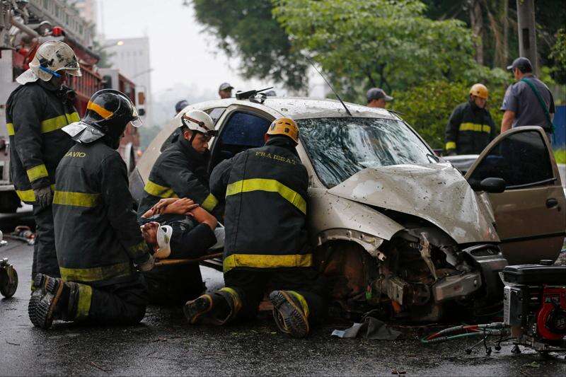Associated Press/Nov. 25, 2012Firefighters rescue a man from a car crash in Sao Paulo, Brazil. Three men were injured when they lost control of their Ford Ka car on one of Sao Paulo main avenues during a rainy morning.