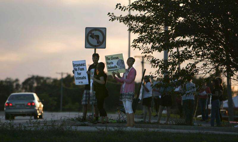 Protesters from People for the Ethical Treatment of Animals were outside the Kane County Fair Grounds in St. Charles before a Piccadilly Circus performance last August. BRIAN HILL/Daily Herald 2012 file photo