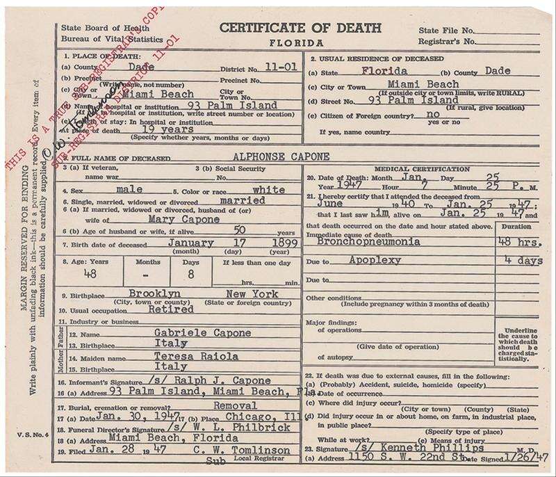 But few know of his tortured demise — not at the hands of mobsters or federal agents — but in the throes of dementia and violent outbursts that marked his final struggle with syphilis.
