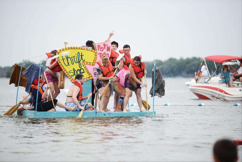 Team Thriftshop kept their boat above water for a respectable amount of time before many of the competitors fell into the water. The 29th-annual America’s Cardboard Cup Regatta took place Saturday at Crystal Lake’s Main Beach. Emmalee Luckas/eluckas@dailyherald.com