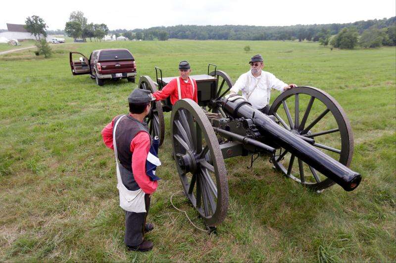 Members of the 4th Maryland Light Artillery unload their weapon in the Artillery park during ongoing activities commemorating the 150th anniversary of the Battle of Gettysburg on Thursday. Associated Press