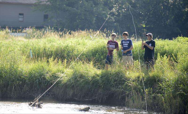 Scott Nory, Jacob Halper and Eric Longo, all 15, of Algonquin, fish in a creek near Towne Park in Algonquin Tuesday. This is all we do everyday, says Longo. Often theyll fish up to 12 hours, no matter what the weather. Halpers Grandfather taught him to fish when he was one. Nory and Longo were also taught at an early age. Halper and Longo are serious about having a career in the sport, and are already talking about running a bait shop on the Mississippi River after college.