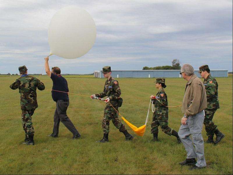 Cadets and senior officers from the Fox Valley Composite Squadron will attempt to break the world record for the highest paper airplane flight from a high-altitude balloon. Courtesy of Keirn Gawthrop