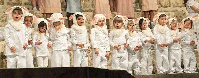 The performance features a 300-voice children-and-adult choir, dramatic lighting and live animals, including an 8-foot camel. It features original songs written by Linda Scudder and arranged and orchestrated by Grammy and Dove Award winner, David T. Clydesdale.
