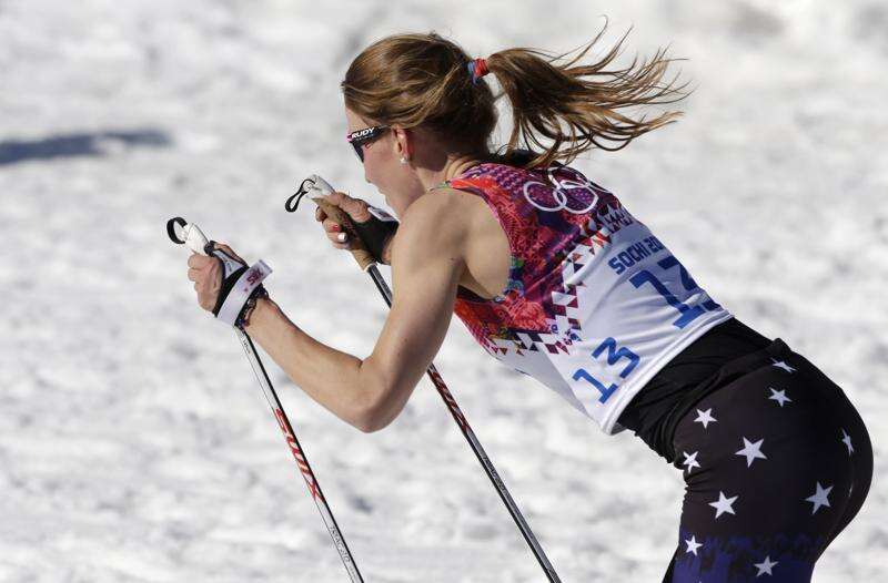 United States cross country skier Sophie Caldwell skis with a sleeveless top Thursday during the women's 10K classical-style race at the 2014 Winter Olympics in Krasnaya Polyana, Russia.