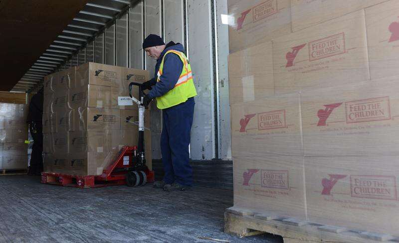 Feed the Children, a not-for-profit group based in Oklahoma City, was delivering 24 pallets of food, hygiene products and other items - an estimated 25,000 pounds worth - to be distributed to struggling families in Mount Prospect.