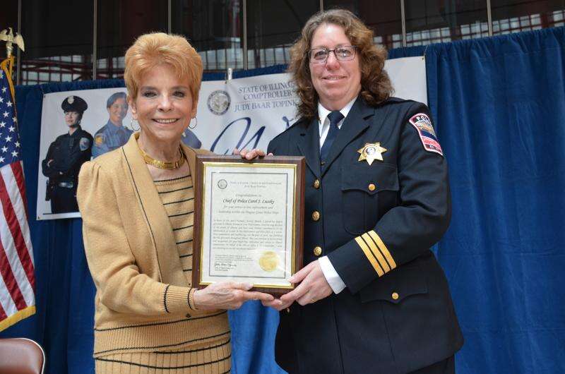 Female law enforcement leaders - including those from Pingree Grove, Aurora, Winfield and Hawthorn Woods - were honored by Illinois Comptroller Judy Baar Topinka as part of Women's History Month.