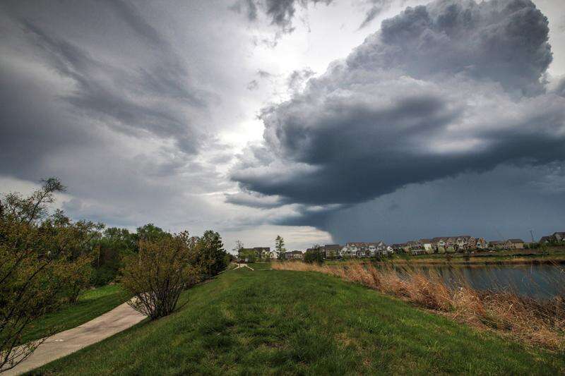 I took this photo earlier this evening as a severe thunderstorm came through the area. It was taken near the water reclamation center in Carol Stream, overlooking a townhouse complex off of Route 64. The photo is an HDR composite of 3 photos combined and tonemapped in Photomatix.