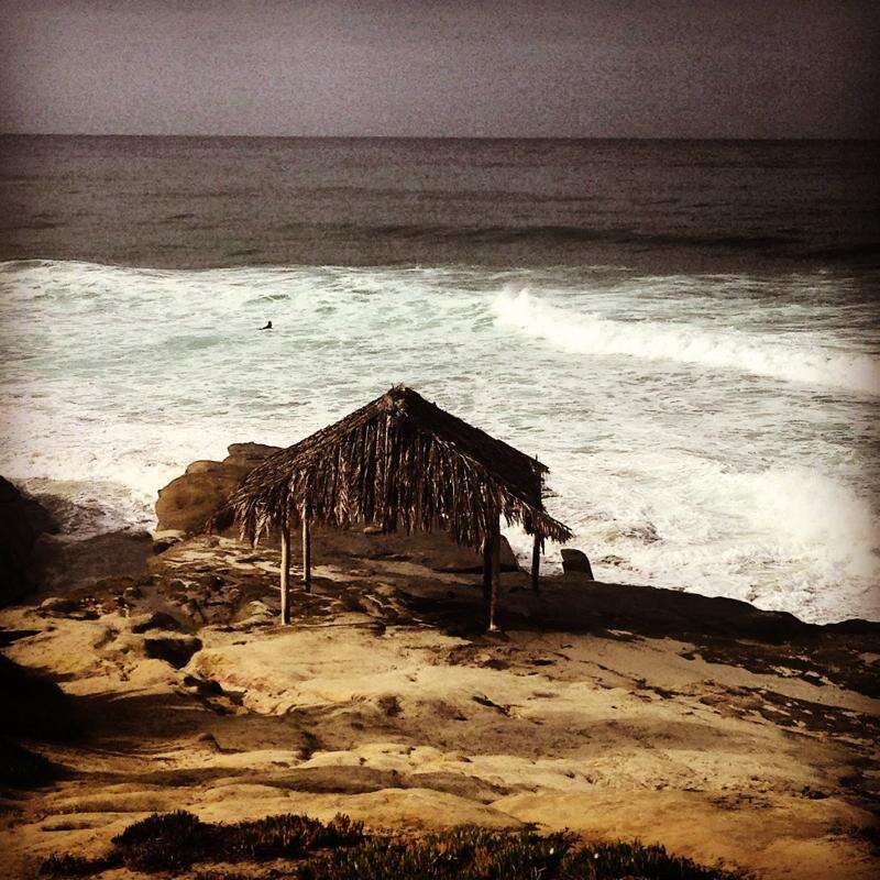 The famous surfing Beach Windansea in La Jolla, California including the historical "Shack" that was constructed in 1946.