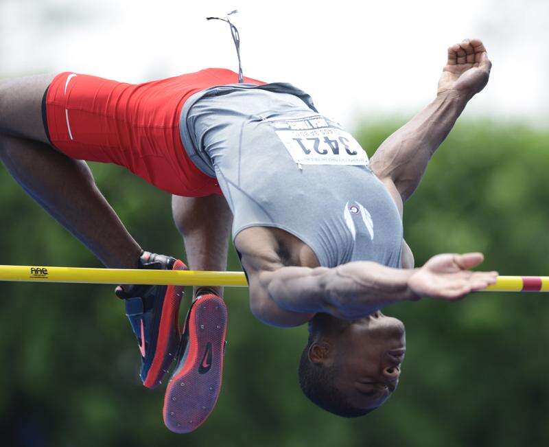 Jonathan Wells of Grant clears the bar at 6' 4" in the high jump during the boys Class 3A state track and field preliminaries in Charleston Friday.