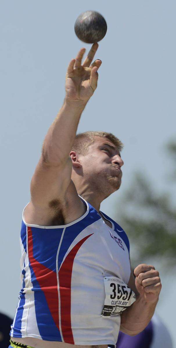 Grant's Jake Bychowski throws the shot put during the boys class 3A state track and field finals in Charleston Saturday.