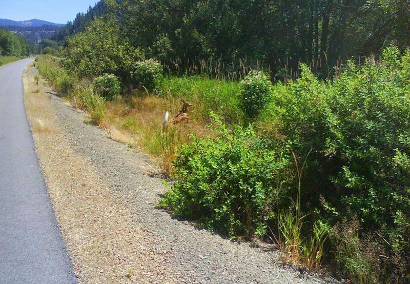 The Springwater Corridor, outside of Portland, Oregon, runs through industrial and residential areas, agricultural fields, along the Willamette River, and near the Oaks Bottom Wildlife Refuge, Tideman Johnson Nature Park and Powell Butte Nature Park.