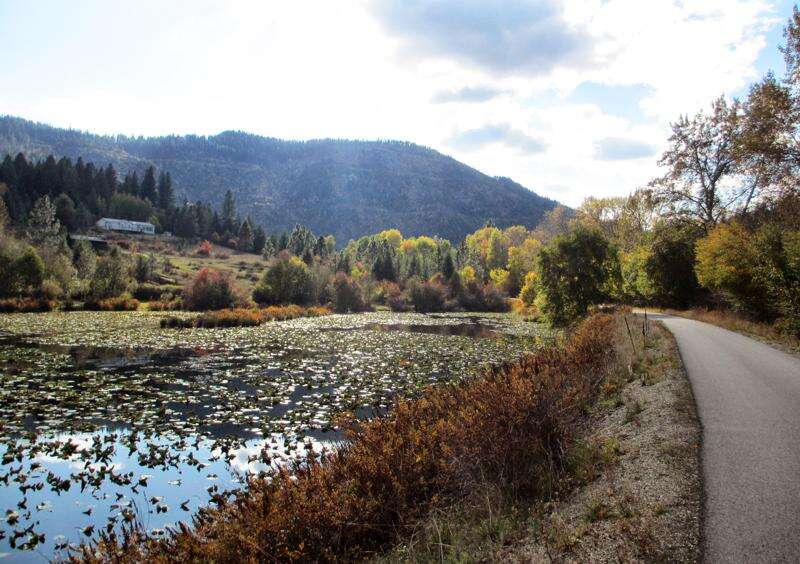 The 72-mile Trail of the Coeur d'Alenes features beautiful views of the south end of Lake Coeur d'Alene, the South Fork of the Coeur d'Alene River and the peaks of the Bitterroot Mountains.