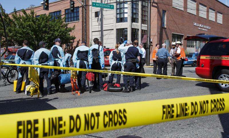Authorities respond to a shooting at Seattle Pacific University campus Thursday in Seattle. AP Photo/The Seattle Times, Dean Rutz