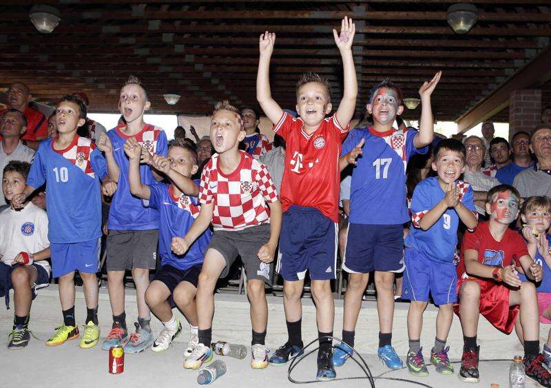 Children cheer for Croatia as they watch the world cup match between Croatia and Brazil at the Croatia Cleveland Soccer Club Thursday, June 12, 2014, in Eastlake, Ohio.