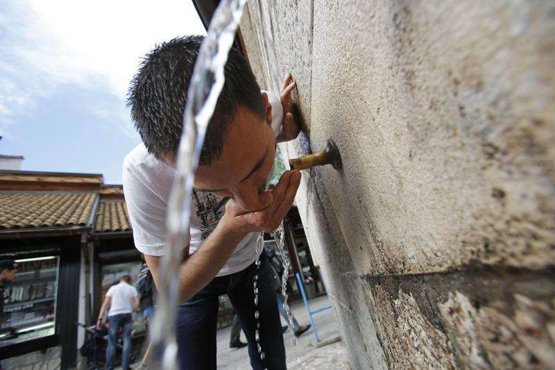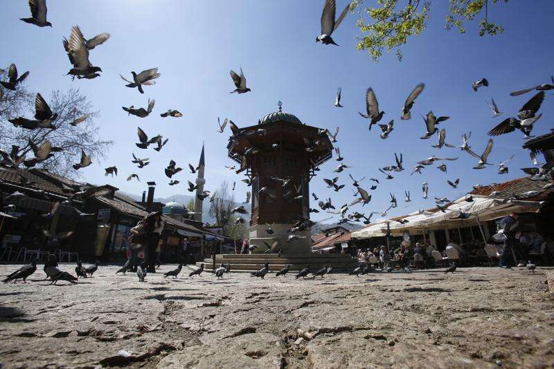 Tourists usually stop at the Sebilj fountain on the central square in Sarajevo for selfies and to refresh themselves from its pipes. Associated Press
