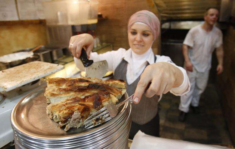 A woman serves up a local dish of meat pie in Sarajevo, Bosnia-Herzegovina. Associated Press