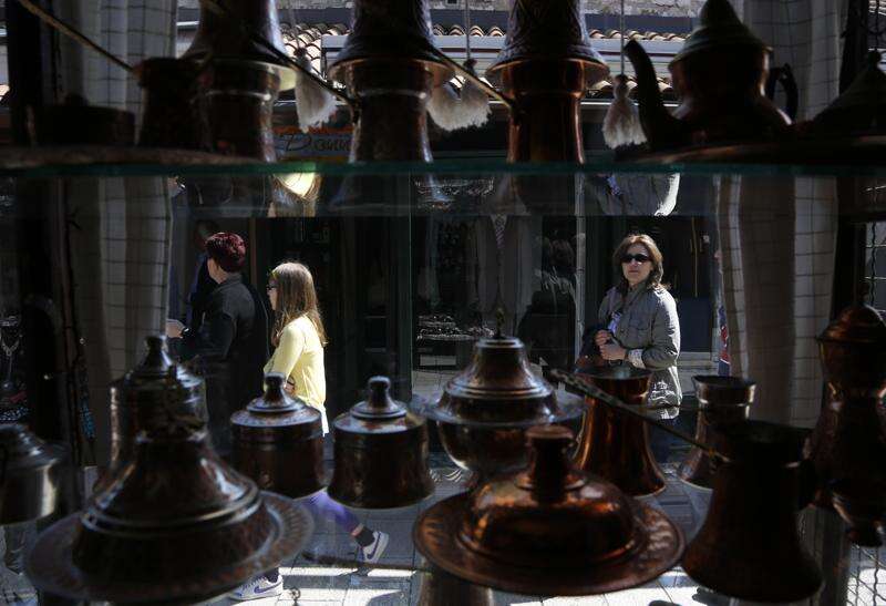 Visitors look through store windows in Bascarsija in Sarajevo, Bosnia-Herzegovina. Associated Press