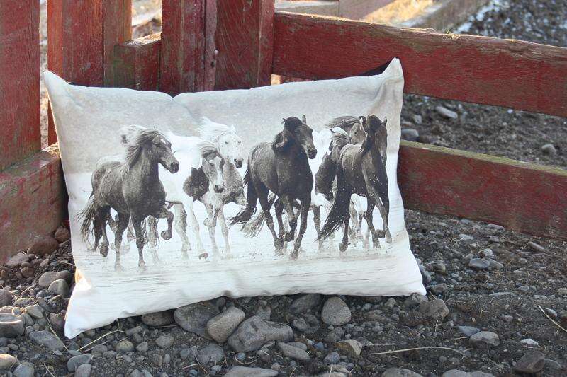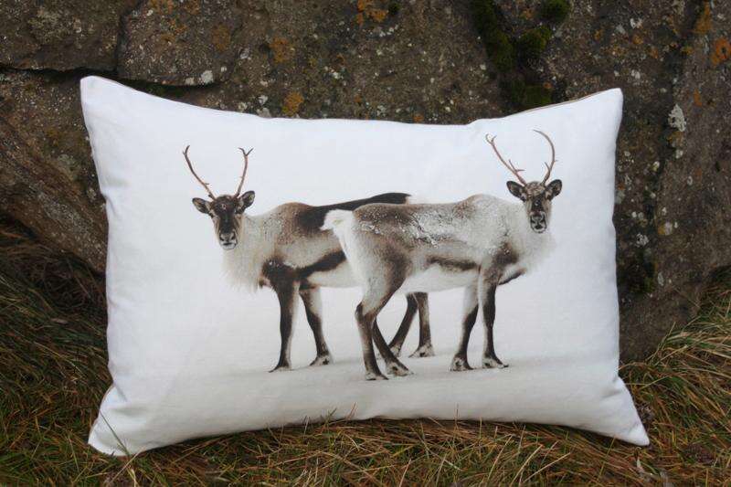 Design studio Lagdur creates evocative photo-printed pillow covers of ptarmigan, fish, Icelandic horses and other scenes from nature. (www.alafoss.is )
