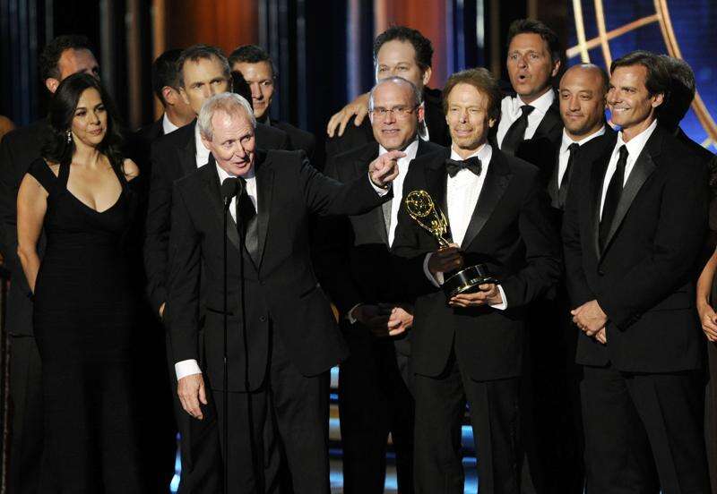 “Modern Family” and “Breaking Bad” triumphed at Monday's Emmy Awards, proving that established broadcast and cable series retain the power to fend off challenges from upstart online series like “Orange Is the New Black.” The ceremony's emotional high point came with Billy Crystal's restrained and graceful remembrance of Robin Williams. “He made us laugh. Hard. Every time you saw him,” Crystal said.