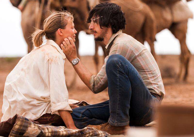 And this, despite the camels, is a movie for the dogs. Rarely has there been a more affecting portrait of a girl and her pup. On her trip, Robyn, in an uncharacteristic moment of affection, sleeps with the photographer (Adam Driver) despite his ceaseless yammering. But he has nothing on Diggity, the black lab whom she tenderly and far more contentedly shares her bed with.