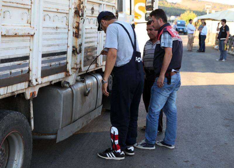 Turkish anti-smuggling experts check a truck on a road near Hacipasa, Hatay, Turkey. At the peak of Turkey's oil smuggling boom, the main transit point was a dusty hamlet called Hacipasa on the Orontes River that marks the border with Syria. Hacipasa has been a smuggling haven for decades, authorities and residents say. The fuel had come from oil wells in Iraq or Syria controlled by militants, including the Islamic State group, and was sold to middle men who smuggled it across the Turkish-Syrian border. Associated Press/September 2014