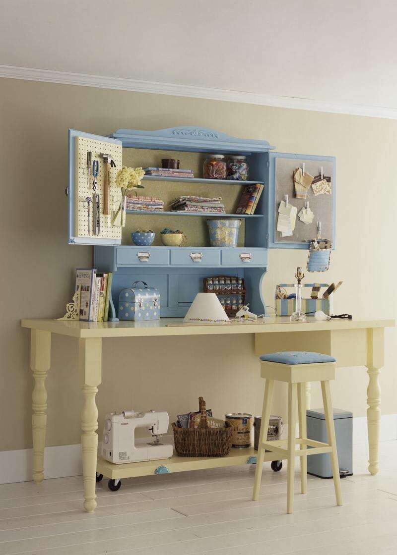 Transform a bedroom with a tiny closet into creative workspace. Suggest a craft or art studio with a table and some neatly displayed materials. Line up a series of identical bookshelves and make a small yet inviting library by adding a rug, a comfortable chair and a side table.