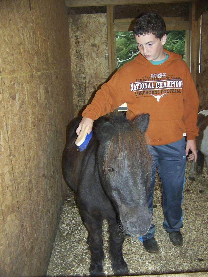 The program has helped Seth build confidence, his mother said. He was afraid to pick up the horses' hooves at first, but he can do that now. He especially likes the miniature horses.