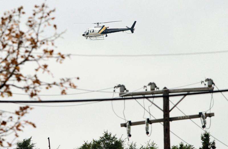 Illinois State Police officers search for Scott B. Peters, 52, who was wanted after two McHenry County sheriff's deputies were shot and wounded in a Holiday Hills subdivision early Thursday.