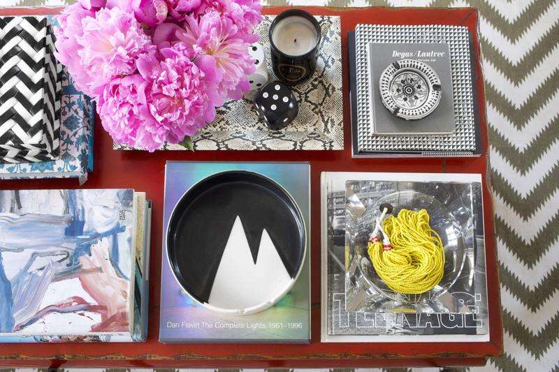 “One of the most interesting ways to define space on a coffee table or sideboard is using trays,” she says. To bring style to a coffee table, stack several books on a large decorative tray, then “have a smaller tray where you put your TV remotes. You're making the mundane stuff orderly, you're giving it some form, and you're actually corralling it and making sense of it.”