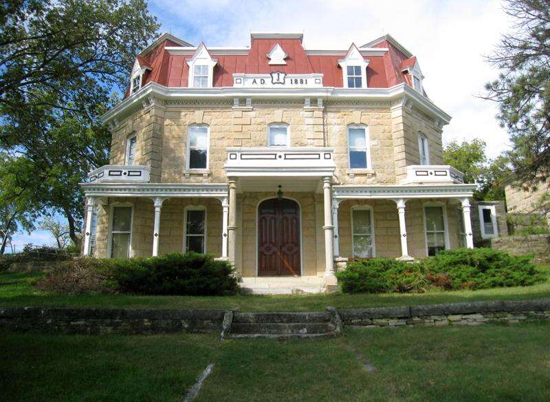 A prosperous cattleman, Stephen F. Jones, lived here on the Spring Hill/Z Bar Ranch with his wife and daughter in the 1880s. Limestone was easily quarried from the layers of rock beneath the rich prairie soil, allowing Jones to build an elegant mansion and stone fencing around his vast property.