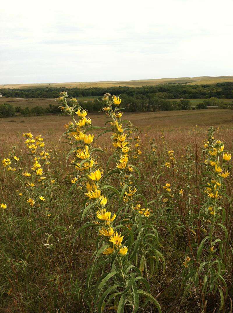 STRONG CITY, Kan. - Stand here in a field of tall, windblown grass and wildflowers, and twirl around like a child. It's like being inside a prairie snow globe: You're surrounded by a sea of green, brown and yellow grass, with a blue-sky dome above.