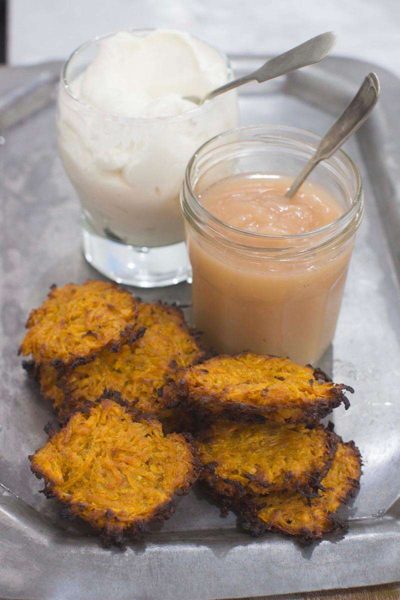 With the coming of Hanukkah, I was inspired to make smoky sweet potato latkes, which balance the sugar of the sweet potatoes with earthy cumin and smoked paprika. They are delicious and crispy and perfect accompanied by unsweetened applesauce and plain Greek yogurt or sour cream.